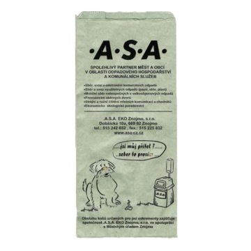 V každém sáčku je lopatka z tvrdého kartonu na nabírání výkalů. Sáčky jsou spojeny provázkem a navěšeny ve schránce na háčky. Tyto sáčky lze snadno jednotlivě odtrhnout. Sáčky svázány po 25ks.