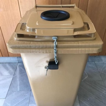 - Řetízkový zámek (dva klíče) pro uzavření víka popelnice