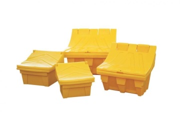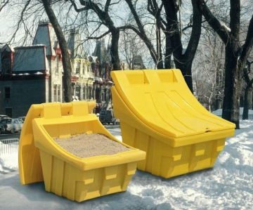 Estetická konstrukce a moderní design. Nádoby je možné umístit na libovolném místě a jejich barva může příjemně oživit okolní prostředí. Robustní a tuhá konstrukce, kvalitní polyethylen a moderní technologie zajišťuje velkou odolnost proti mechanickému poškození a atmosférickým podmínkám (vyznačují se vysokou stálobarevností i za dlouhodobého působení slunečního záření.) Jsou lehké a nekorodují (žádné kovové součástky). Zásobníky je možno použít i ke skladování jiných posypových materiálů. Tyto zásobníky jsou certifikovány Státním Hygienickým Ústavem.