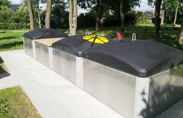 Kontejner RBin Maxi Solo 5000L je náš největší objem. S naším kontejnerem Solo je jedna frakce instalována pod krytem, který se zvedá jako jeden celek.