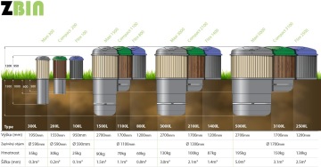 Polopodzemní kontejnery ZBin jsou k dispozici v kapacitách od 100 do 5000 l. Pro likvidaci odpadu jsou k dispozici pružné či polotvrdé tašky nebo tvrdé vložky. Všechna řešení jsou přizpůsobena shromážděné frakci, která se recykluje a skladuje.
