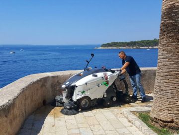 100% elektrický mini zametač Itala 135 BT, který je k dispozici také s praktickým vozíkem pro obsluhu, je také elektrickým zametačem chodníků. Díky kompaktním rozměrům a neuvěřitelné manévrovatelnosti je ideálním řešením pro úklid městských prostor.
